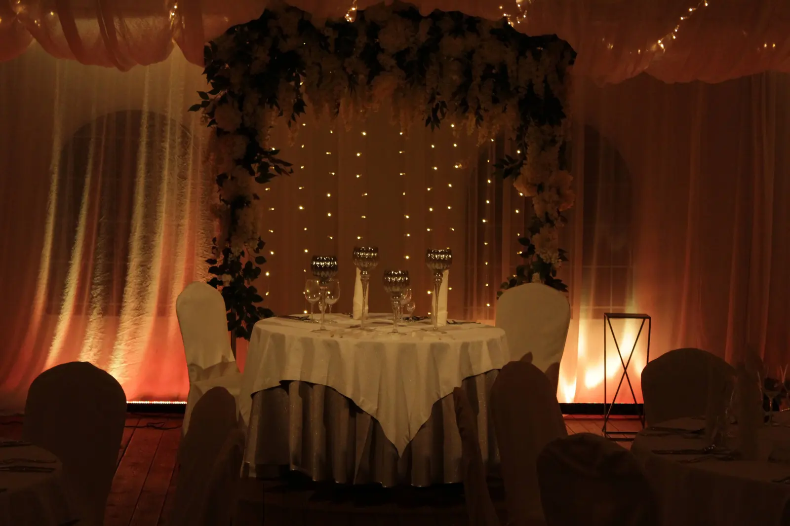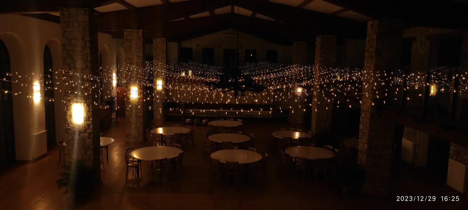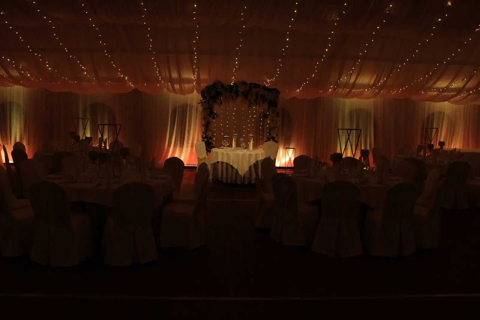 Zakres prac obejmował rozmieszczenie oraz instalację oświetlenia dekoracyjnego w przestrzeni obiektu, z uwzględnieniem jego architektury i układu sali.