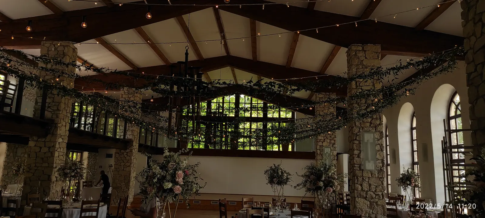 Realizacja montażu girland w przestrzeni restauracyjnej hotelu.