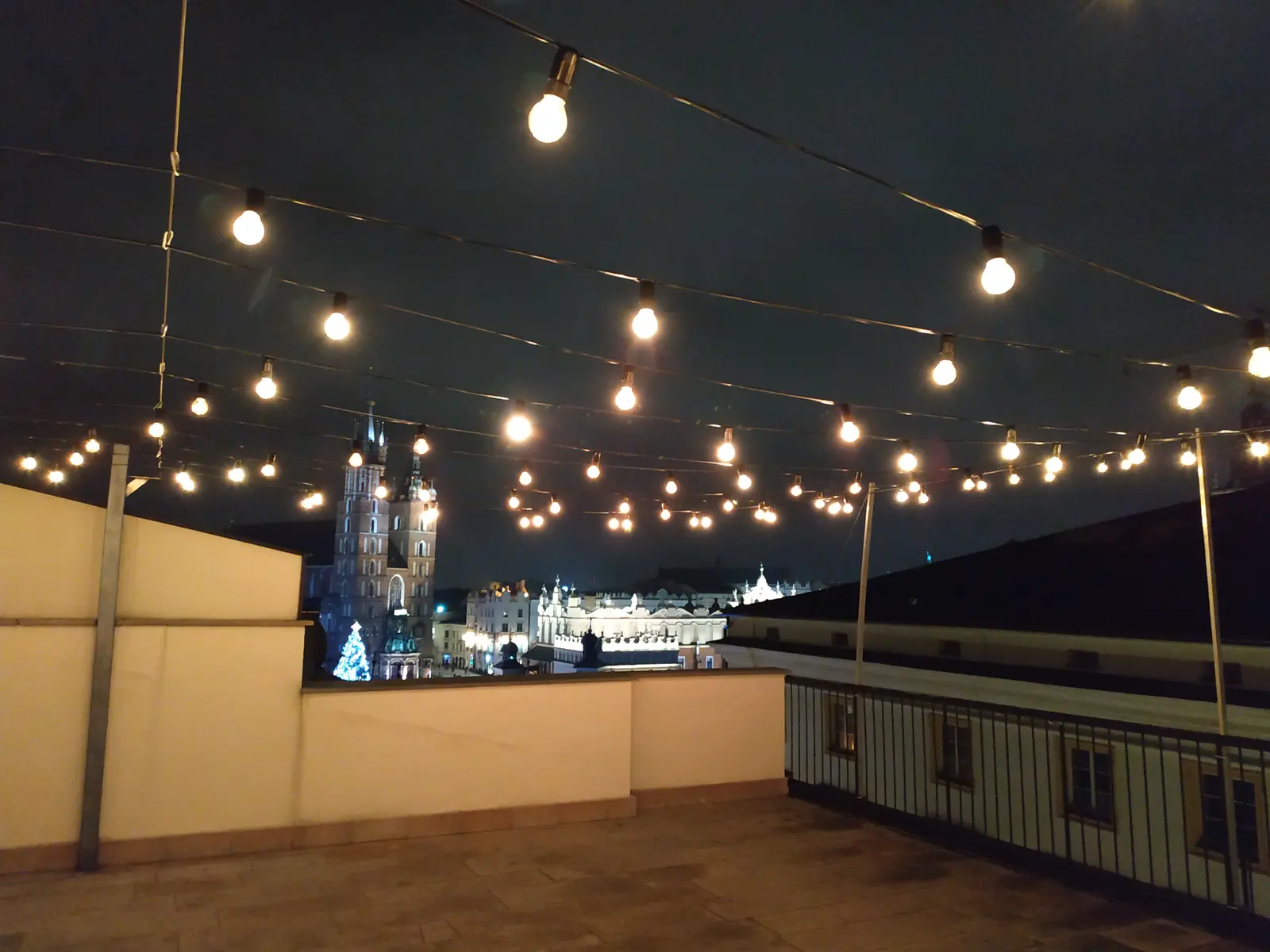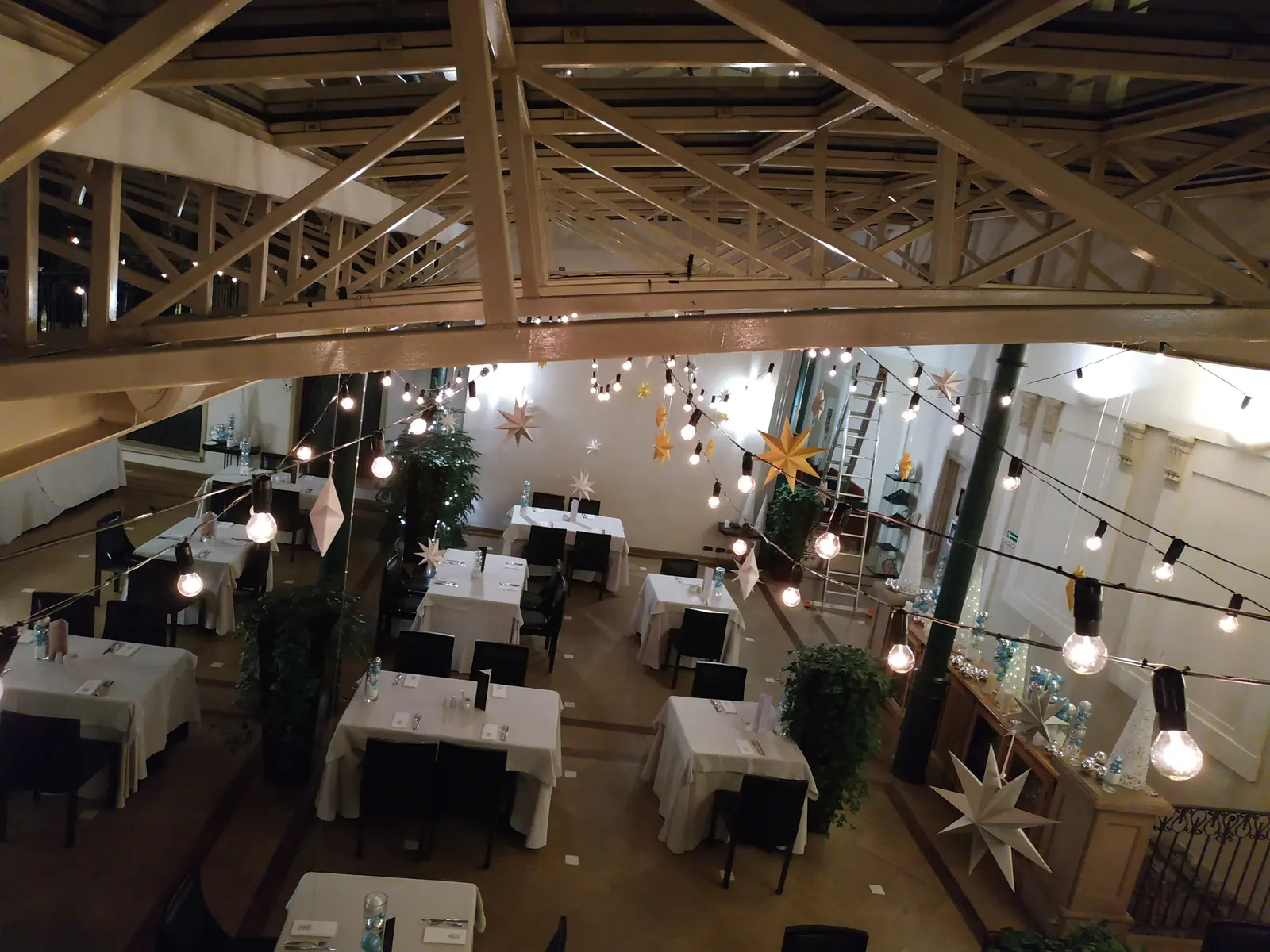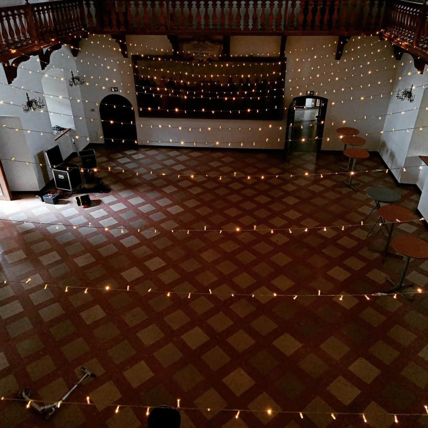 Jedna z wcześniejszych realizacji montażu girland w przestrzeni o bardziej zabytkowym charakterze.