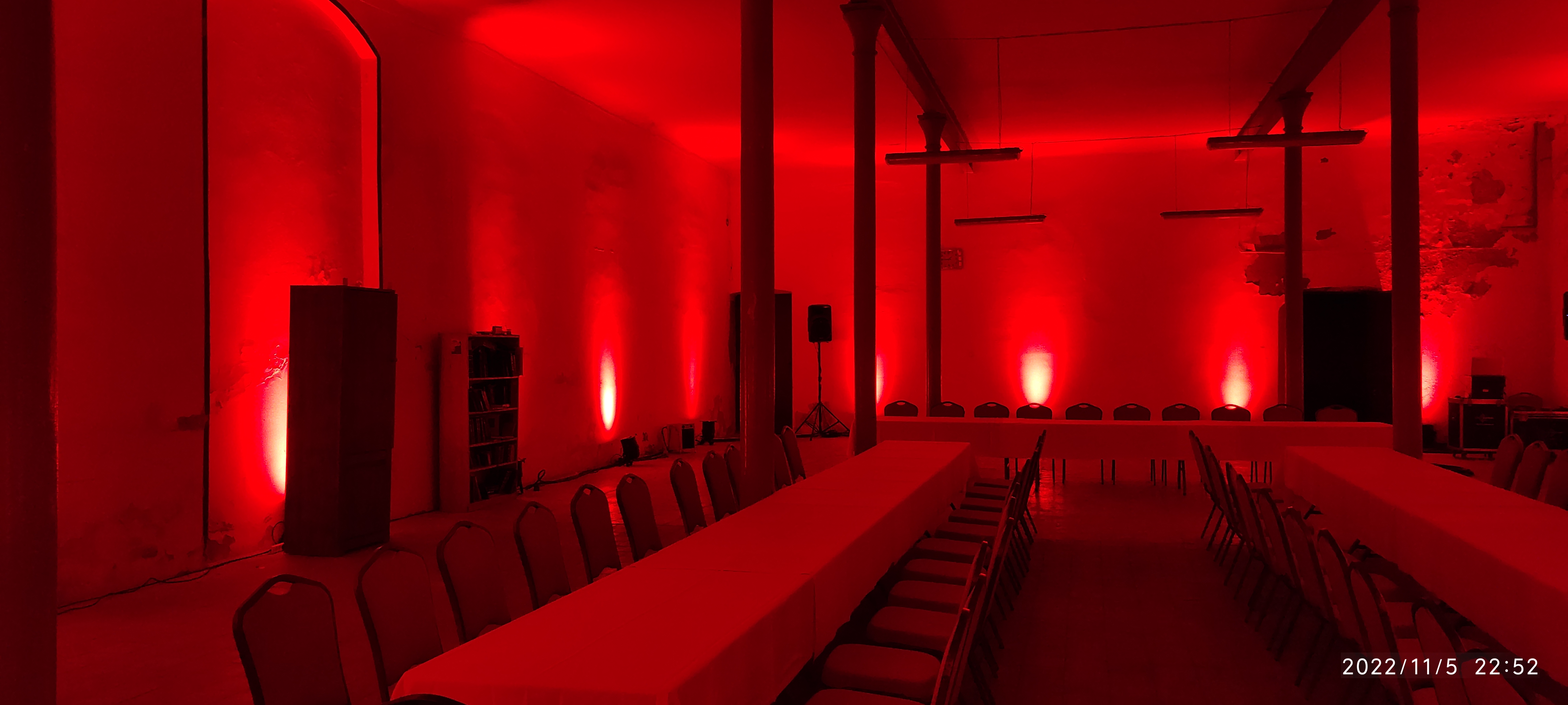 Tego typu realizacje różnią się od koncertów — światło nie ma tu dominować, tylko wspierać atmosferę i charakter spotkania. Kluczowe jest odpowiednie dobranie kolorystyki oraz równomierne doświetlenie przestrzeni, tak aby stworzyć spójny i spokojny klimat.